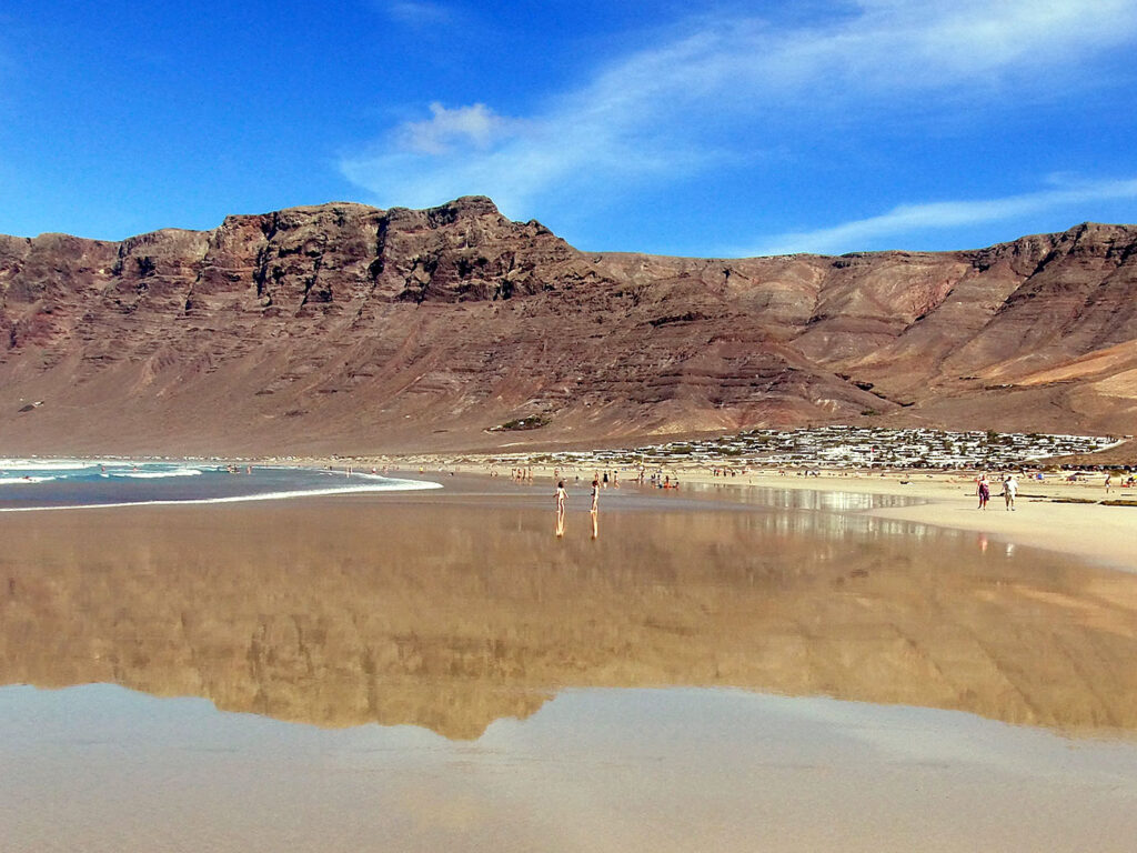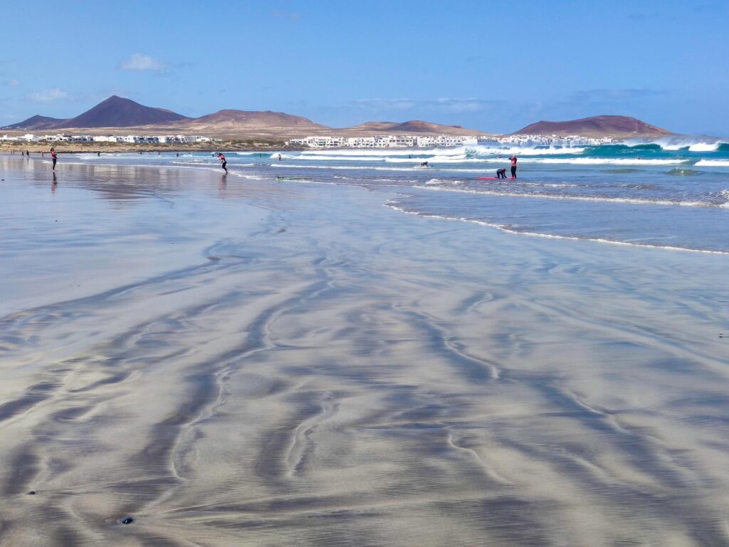 Фамара – визитная карточка Лансароте, природная красота этого места завораживает. Особенно приятно гулять во время отлива, когда песок покрыт тонким слоем воды, в которой, как в зеркале, отражаюся небо и люди с досками. Пляж не оборудован для купания обычных отдыхающих в плане душей, лежаков и кабинок, а флаг на вышке спасателей почти всегда красный. Тем не менее, находятся желающие попрыгать в высоких волнах на линии прибоя и зарядиться энергией океана.