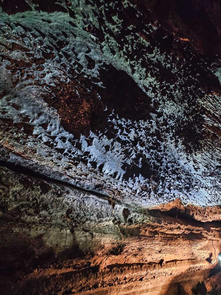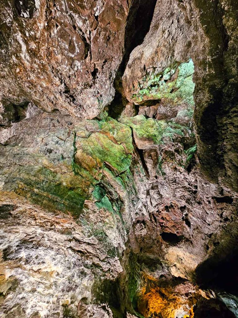 Реки лавы текли на разных уровнях и общая высота пещеры составляет 50 м. Своды покрыты лавовыми сталактитами, а стены окрашены в разные цвета: красно-коричневый, серый, черный. В 1964 году пещеру оборудовали дорожками, лестницами, светом и музыкой, но сделали вмешательство рук человека как можно менее заметным. Гуляя по пещере, в полной мере ощущаешь мощь раскалённой лавы, сжигавшей всё на своём пути.