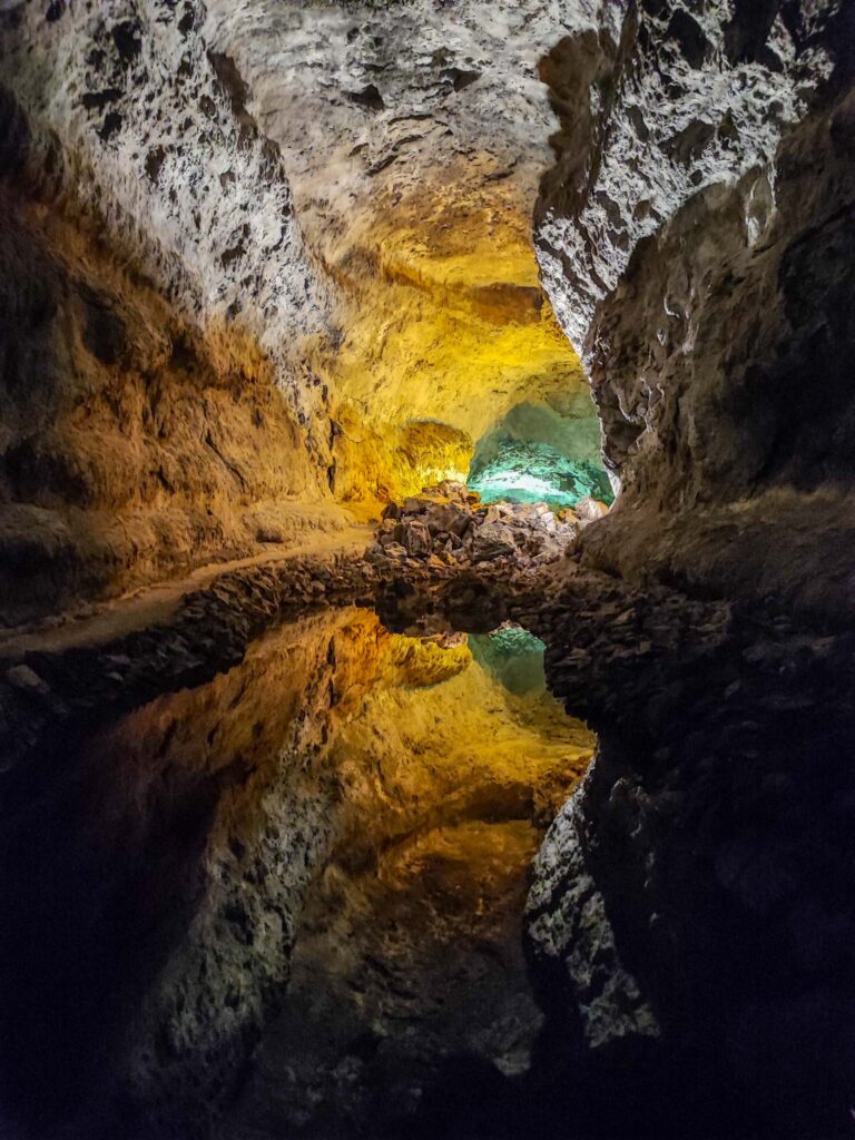 Эта пещера вулканического происхождения – одна из самых значительных в мире. 20 тысяч лет назад на севере Лансароте произошло извержение вулкана Корона. В ходе извержения из кратера лавовые реки текли в направлении к океану. Верхняя корочка остывала, а раскалённая лава внутри продолжала течь. Таким образом образовался вулканический тоннель длиной 7 км, известный как Тоннель Атлантида. Он тянется от вулкана Корона до берега океана и уходит вглубь на 64 метра. 1600-метровый подводный участок тоннеля – самый большой в мире.
