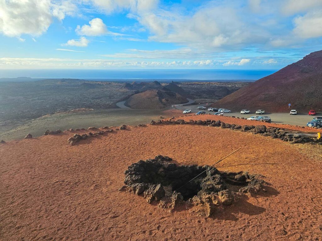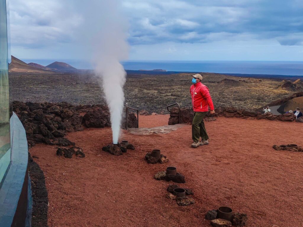 Чтобы осмотреть Тиманфайю, вы заезжаете на машине или такси в сердце парка, на Islote de Hilario, с которого открывается вид на 25 вулканов. Здесь вы пересаживаетесь на туристический автобус, который едет по 14-км головокружительному маршруту, поднимаясь на самый высокий вулкан парка под объяснения на трёх языках. После автобусной экскурсии вы переходите к демонстрациям жара, идущего из-под земли: на 13 м вглубь температура земли достигает 610 градусов. Это не означает, что вулкан действующий. Дело в том, что участок магмы на глубине 4-5 км не застыл после извержений и до сих пор отдает тепло. Для демонстрации этого тепла в парке сооружены искусственные гейзеры – вкопанные в землю десятиметровые трубки, на дне которых температура составляет 400 градусов. Работник парка выливает в трубку воду и через секунду она вырывается наверх в виде пара. А рядом сухая трава загорается прямо на земле и камушки с которой обжигают руку своим жаром. Жарче всего у жаровни в основании ресторана, которая напрямую соединяется с участком магмы.